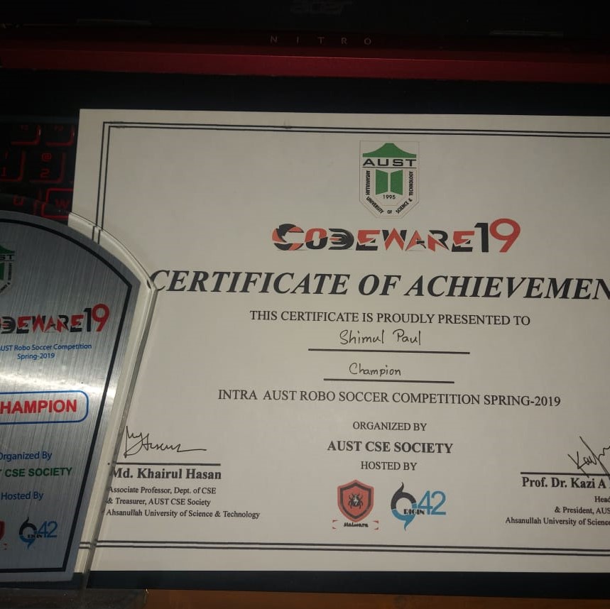 CHAMPION in Robo Soccer Competition, Codeware19 (INTRA AUST ROBO SOCCER COMPETITION)