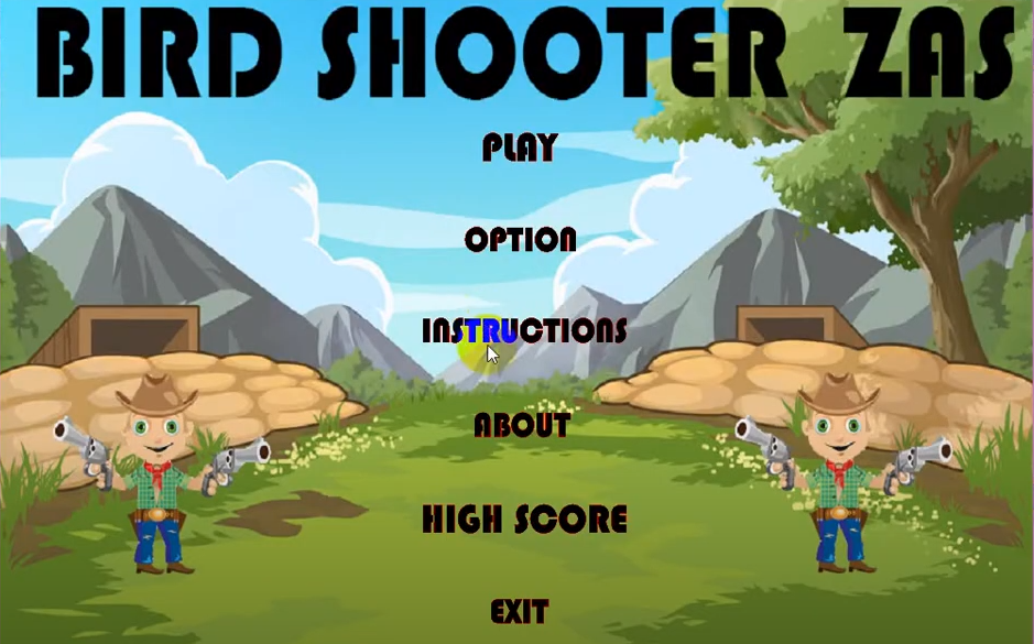 This project(Shooting game) made with visual studio 10. the main page has 5 states, the 1st one starts the game. The objective of the 1st level of the game is to shoot the birds and collect points in a certain time and go to next level. In the 2nd level shooter has to shoot the birds and collect a certain points in certain time to win the game.The game will be over if the shooter loses all the lives by missing the targets and collecting life killing gems.In both the levels shooter can collect life increasing gems also.