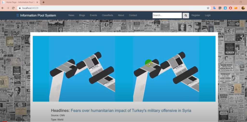 The Information Pool System is an online-based website that showcase news from various sites in one place. It aims to be the one-stop destination for people seeking information about current events of the world as well as find classfields according to their requirements.
