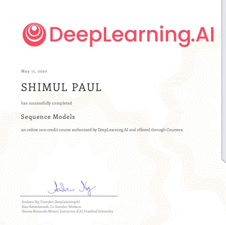 Educational, Specialization in Sequence Models in the year 2020.